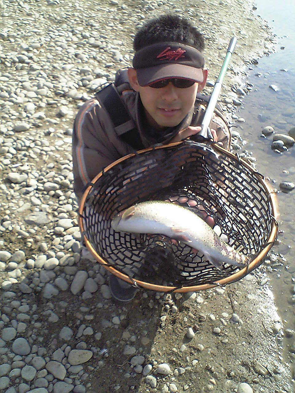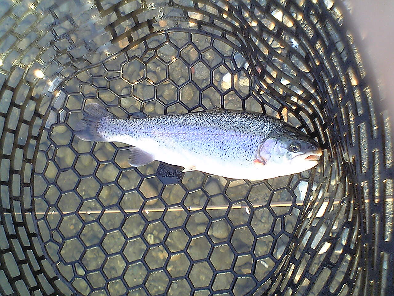 と言う事で、釣開始!すぐに鱒君の放流も開始され、釣れそー・・・と思いきやなかなかアタりゃん。(^^;あれ、もしかして今日は釣れない日??放流魚が回り始めるとようやくHITし始めました(^^)