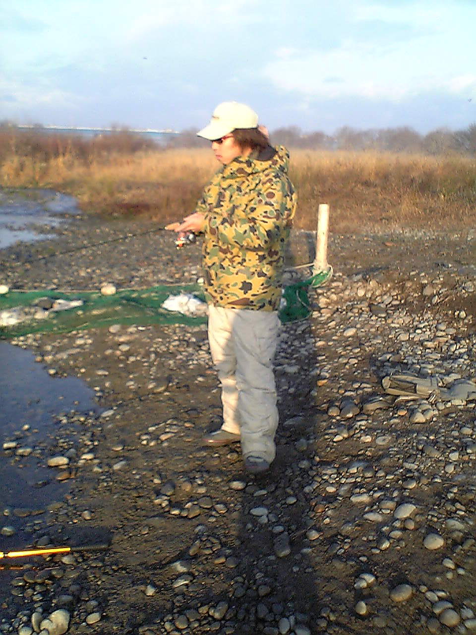 それにしても、人が多いだけにアタリが少ない・・・途切れ途切れながらも何とか釣れる感じ。プラグの人はコンスタントに釣れてるなぁ・・・俺もプラグ投げよかなぁ・・・(^^; その時、ネ「プラグ投げてみようかな」管「サイテー!男なら意地でもスプーンで釣らんかい!」(^^;どうやらサカイ君はだいぶ集中力が欠けてきたらしい(^^;
