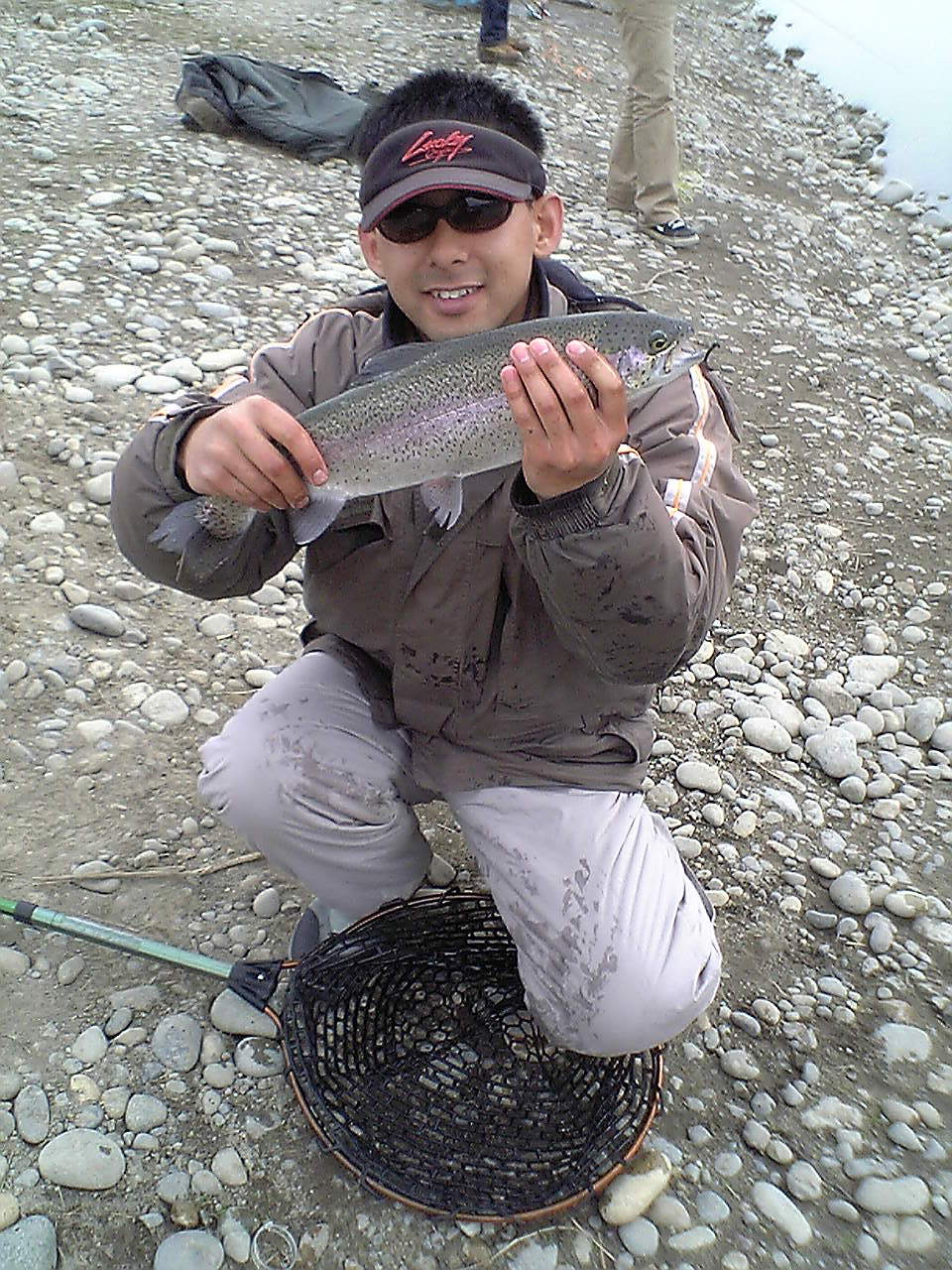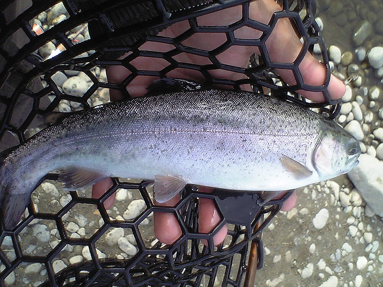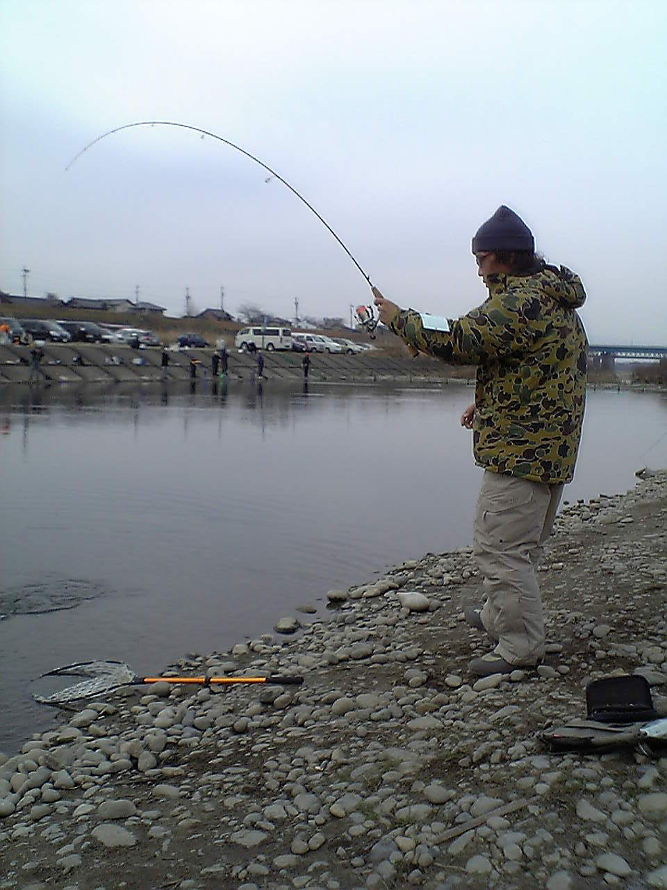 そして、放流も開始(^^)今日は放流量が多かったように見えました。放流後はやっぱり爆釣モード!ネコ君のカーディフもキレイな弧を描いている(^^)管理人はリーダーのミスセッティングによるライントラブルで釣りどころではない・・・なんでやー(T_T)