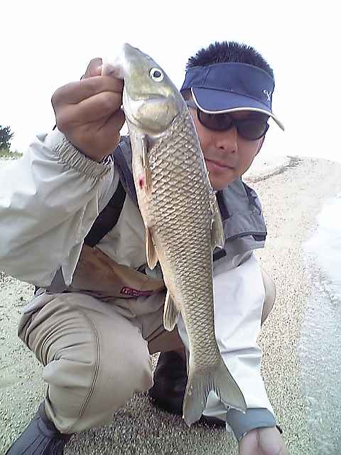 和邇到着。河口には人が数名居たので、南側のブレイク沖を狙うことに。管理人はキャロをキャスト・・・しばらくして、アタリ・・・フッキング(^^)30upをゲット(^^)コバスがポロポロ(^^)