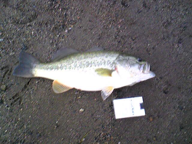 それから浮きキャロにチェンジしてアクションしているとゴンっとアタリがあり浮きを見てみると無い!あっ!?浮かんで来た!ちび君かな〜と思い再びアクションをつけるとガボっと浮きにバス君がアタック!!えっ?針ついて無いのに(^^;