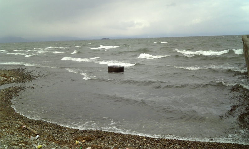 4:00、におの浜到着・・・水温8度。釣り人6名ほど・・・やっぱ居るんですね(^^)まあ、それはいいとして・・・・何この風?台風?におの浜に白波がザブンザブン押し寄せてる・・・(^^;釣りできるのか?