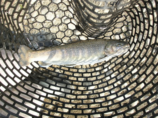放流後なのでネコ君すぐにヒット!しかもイワナさん(^^)やるな〜(^^;