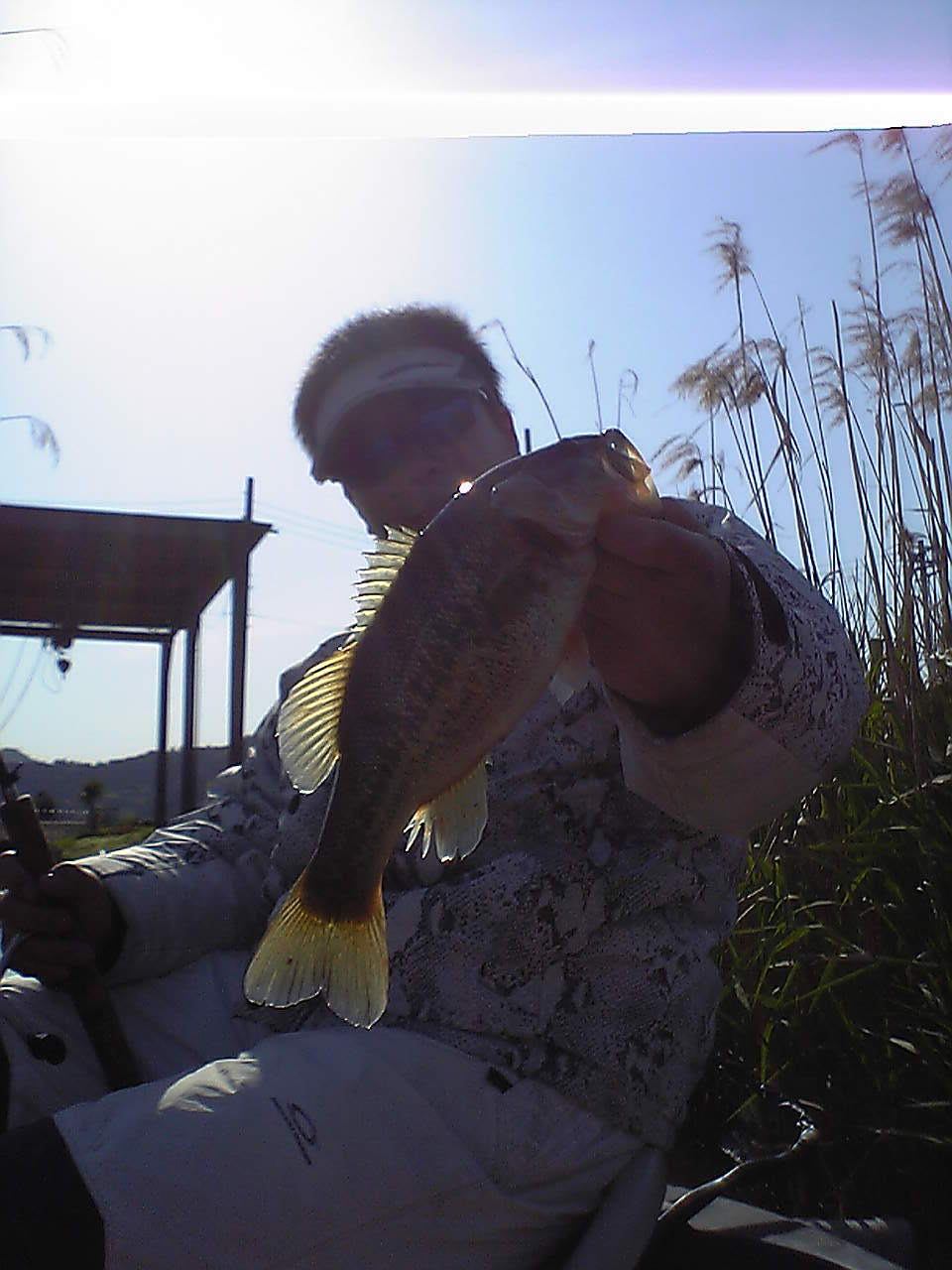 管理人はどうしても釣りたかったので、HDにチェンジ(^^;すると、管理人のロッドが少し重くなり・・・あれ、ウィードかなぁ・・・と、巻き上げてくると「チャパチャパチャパ」と小バス君が暴れていた(^^;管「あら、釣れとる・・・(^^;なんじゃコリャ・・・」嬉しい反面悲しいかぎりや・・・(^^;