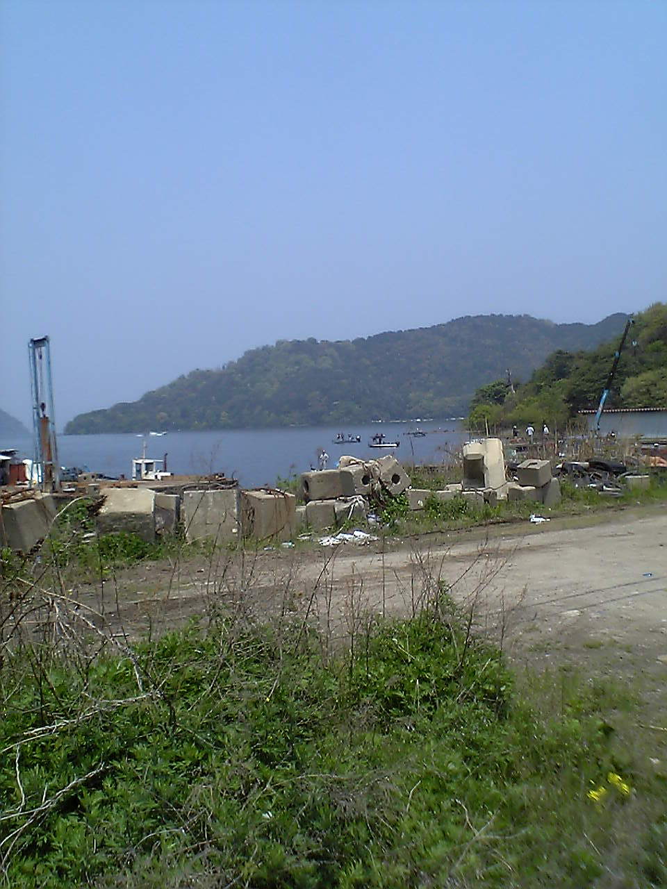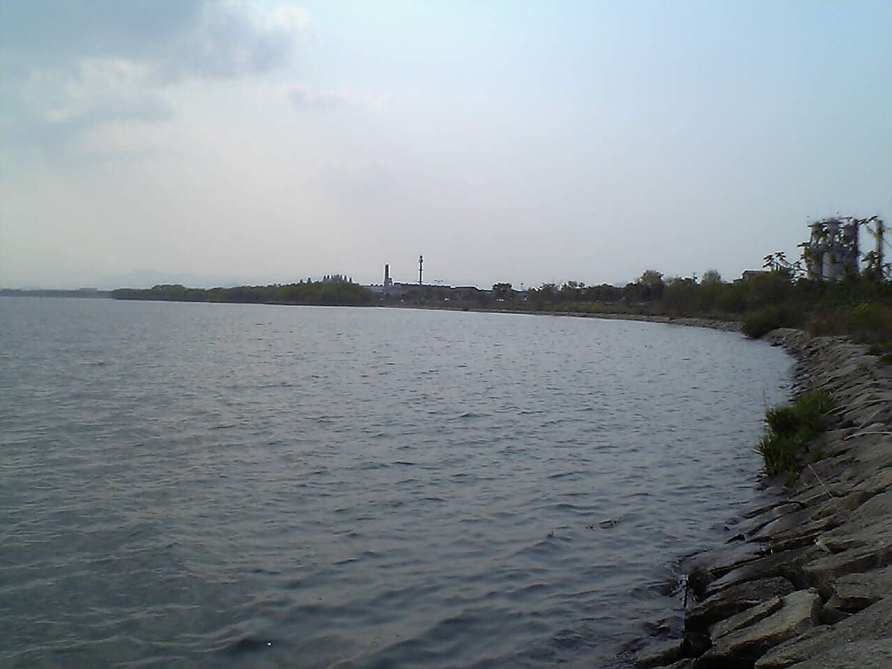 木の浜5号(琵琶湖側)到着。水はわりとキレイな感じ。ここも沢山のボートと、おかっぱりアングラーが・・・(^^;とりあえず、2人でキャロを投げていると、ネコ君にアタリがあったがフッキングにいたらず(^^;