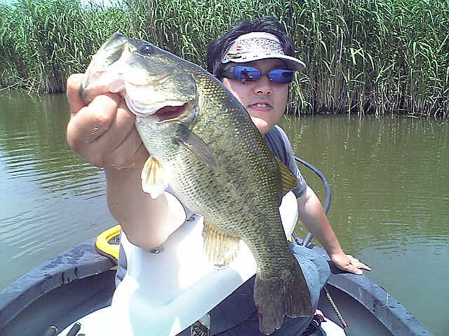 あれはマグレ(^^;と思えてきたので、今度は棚打ちすることに。コバス君がヘビダンでポロポロ釣れ、葦に戻ってもコバス君しか遊んでくれなくなった所で、ビニール王君が「もう帰りたい」と言い出したのでしょうがなくお昼終了。