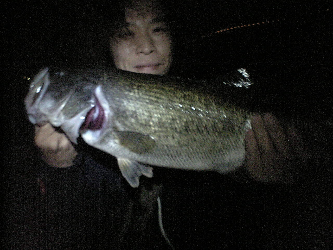 それにしても、めっちゃ引くやん(^^;ネ「何これ、コイか?」・・・・、なんとか引き寄せて魚影を確認すると、間違いなくバス君でした(^^;しかも、かなりデカイ・・・(^^;