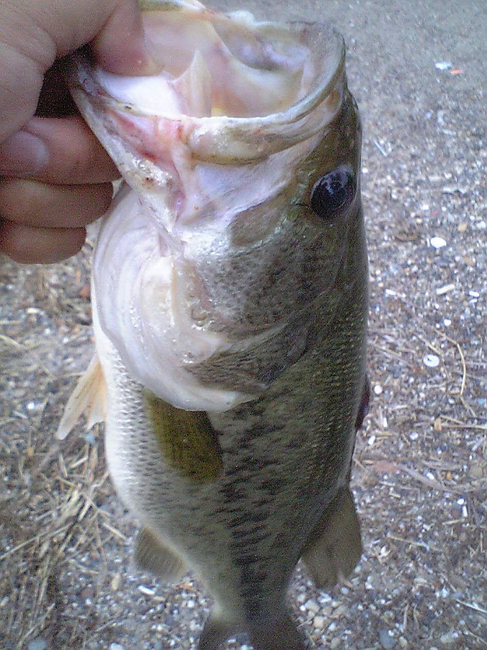 釣り人が7名ほど・・・・結構いるなぁ(^^;いつもどおりベイト1本で勝負。デスアダーグラブで巻き流していくと、コバスが2匹釣れてしまいました・・・・君たちよく食べれたもんだ(^^;