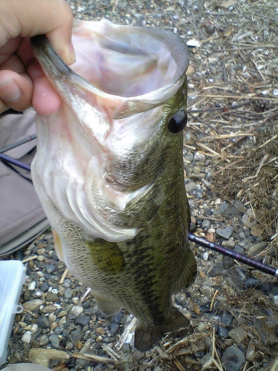 そして、またロッドが引っ張られ、フッキング!うん!やっぱりフッキングの感じがとてもいい(^^)そして今度は、バス君もボチボチかな?ていうか、魚が遠い・・・(^^;沖からやってきたのは46センチ!