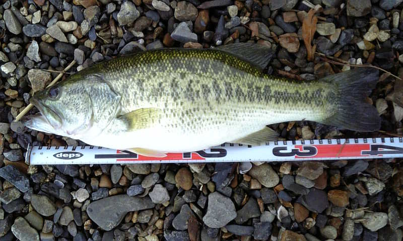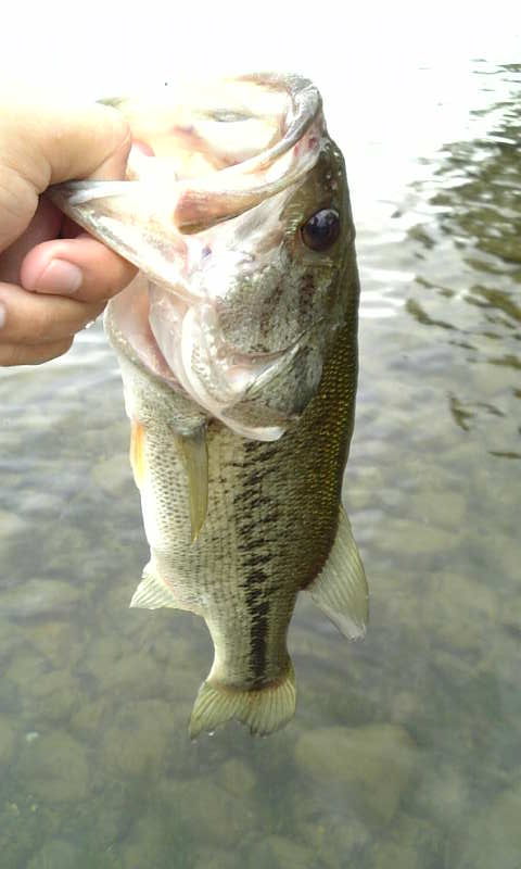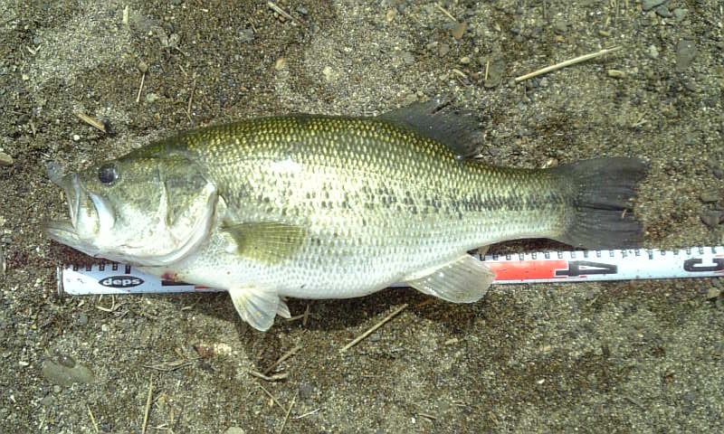 手前でコバスがポロポロ。そこへおばちゃんがやってきて、お「釣れるかね?」管「小さいのなら・・・」お「おばちゃんな、ブラックバスの絵を描きたいんやけどなぁ、小さいの釣れたら1匹もらえんやろか?」管「いいですよ(^^)釣れたら持ってきますわ」と、おばちゃんからコバスを捕獲せよとの指令が・・・(^^;
