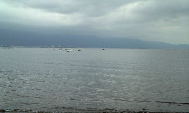 和邇到着。水温26度。お、水泳場のブイが無くなっている。秋ですなぁ〜(^^)