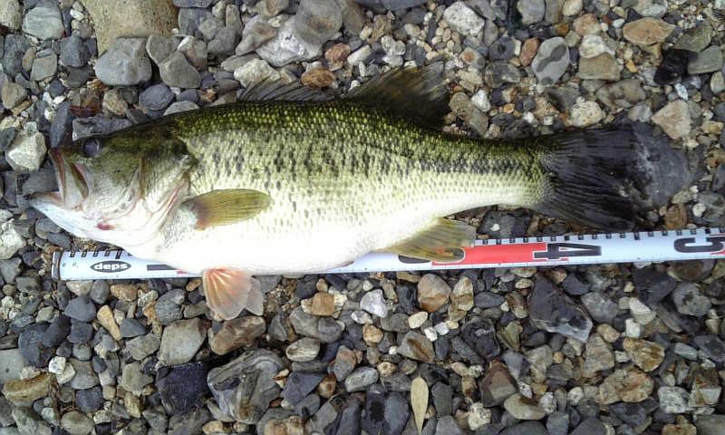 さて何投げよかな・・・・まずはカッテ6.5キャスト。しばらくすると、いいアタリがありフッキング!30upゲット(^^;その後は、クランク、バイブレ・・・反応なし(^^;移動。