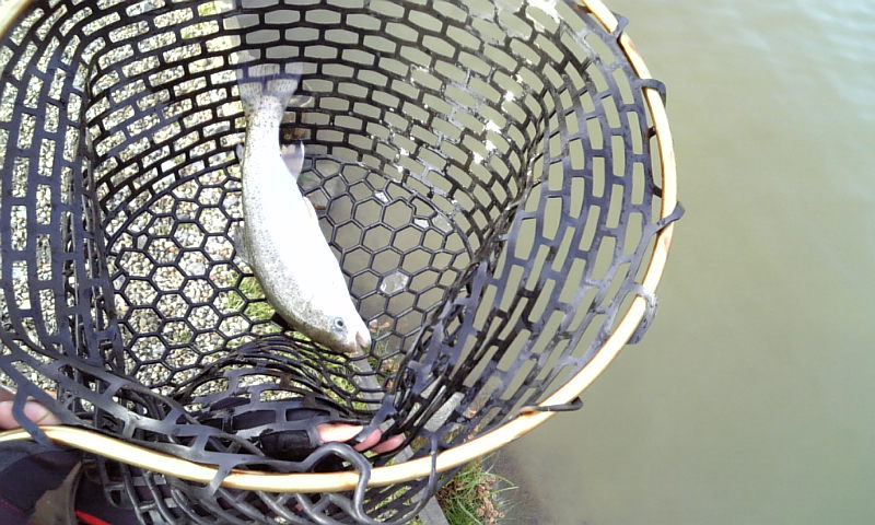 しばらくすると、放流タ〜イム(^^)放流の様子を見ていると、今日はストック池に残っている魚を全部入れたようでそれなりの数が放たれていました。