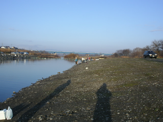今回は混雑を予想して6:40に到着して、場所だけ確保(^^)すでに沢山の人が場所取りしていた後なので、中央ネットのちょっと下流しか良さそうな所がない(^^;後は開始時間を待つ(^^)
