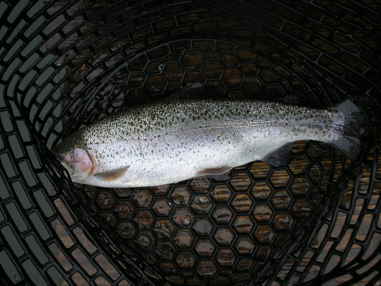 しばらくして、ヤスダ君がおかしな行動をとった後、こっちへやってきた・・・話を聞くと、釣ったマス君が排水溝(直径20センチほど)に突入したらしく、スプーンごと流れていってしまったらしい・・・・なにしとんや(^^;
