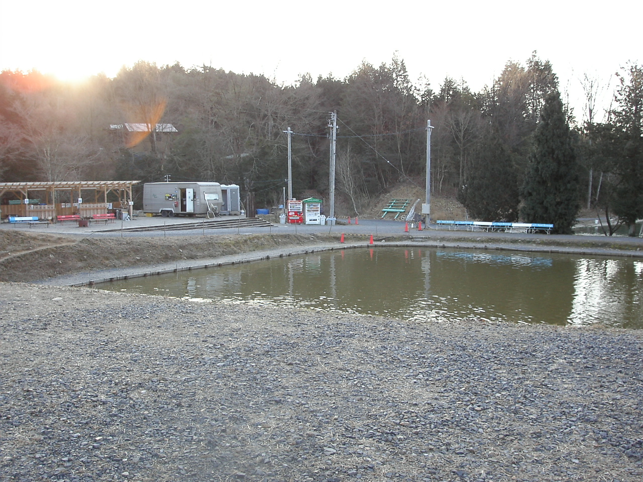 やな感じ〜(^^;それにしても、気温がやたら低いみたいでラインとガイドなどがすぐに凍る・・・・釣りに集中でき〜ん・・・ビニール王君はポンドを1周しながら釣り歩いていく・・・管理人は面倒なので、動かず集中。