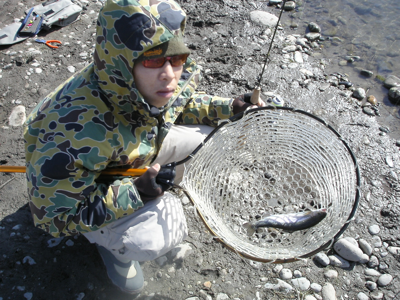 氷をくだいてもらって、氷の隙間になんとかキャスト・・・全然引けない・・・もう少し溶けんとなぁ〜。