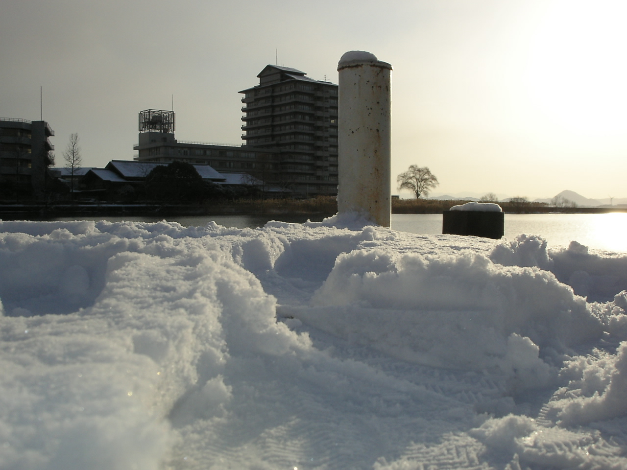 なんとなく、分かってはいましたが琵琶湖に向かう途中、長命寺辺りで雪が降り出し、路面もプチアイスバーン状態になっていました(^^;通常走行は無理・・・。安全運転で3:00におの浜に到着。