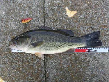 先行者は4人ほど。管理人はウオ君で流していくと、コバスらしきアタリが1度きり・・・。その後デス6にチェンジすると、すぐに30UPをゲット。それなりに魚影は濃いのか?(^^)