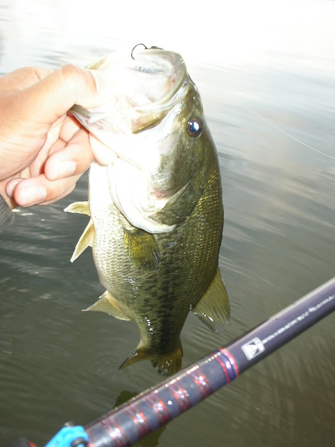 そして、コバスがヒット。その後はアタリが無いので、P裏まで歩いていく。こっちは濁りの影響をあまり受けていない(^^)
