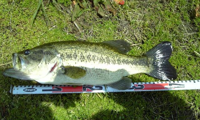 スタッガーをキャストしていると、ポツポツアタリがある・・・そして、ウィードに絡んだ所で・・・「どぅ・・くぅ・・・・」き〜た〜(^^)動かんけど、今のは食ったやろ〜?