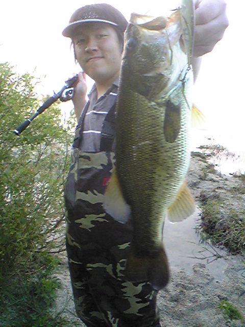 するとすぐにジャストキーパーのバス君が釣れ!続いてめっちゃくちゃ引きが強い45pのマッチョバス君が釣れました(^^)