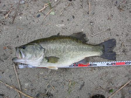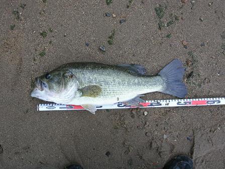 おお〜、このバス君メチャ引く(^^;やっとこキャッチしたものの、手で持っていても激しく抵抗(^^;おかげで、管理人のお手手から流血・・・。