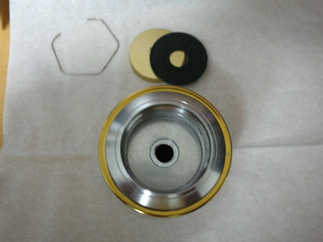 このカラーはピッタリと入っているので、スプールを裏返して裏側から同じぐらいの径の棒や、ラジペンの先をうまく使って左右均等に力をかけてやると、簡単に抜けます。