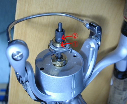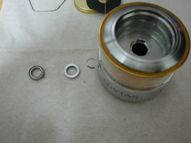 Aの部分はスプールにカラーが組み込まれているので、それをBBに交換します。